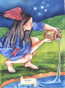 To the right on each page is an image of our coven sigil. The seven pointed star refers back to the Pleiedes and to the Star of Faerie. The sigil for Aquarius refers to our coven being in the Circle of Aquarius. The crescent moon refers to the element of Water, our coven being the Water coven within the Circle of Aquarius. Our coven colors are blue, violet, and silver. Violet stands for the sphere of Yesod, the sphere of the Moon and the Astral on the Tree of Life. The Turquoise blue you see is the color used by all the Assembly covens as a uniting color. The silver refers back again to both water and to the Moon.